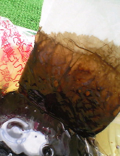画像右:1時間ほど放置した後に沈澱物を確認してみたところ…巨大な塊が出ました(滝汗)